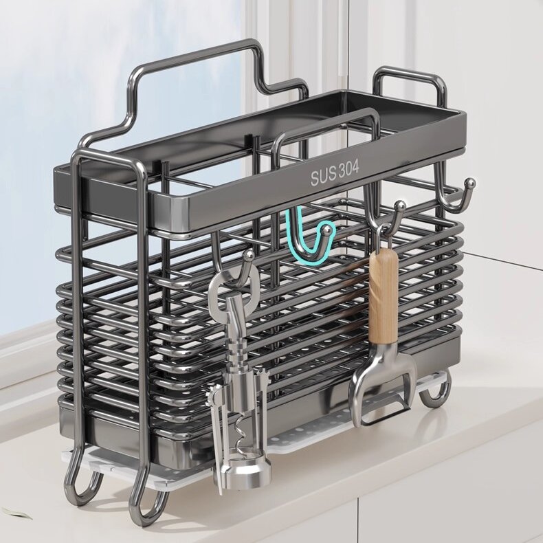 Jedna od istaknutih značajki držača za posuđe Three Frames je njegov inteligentni dizajn s tri odjeljka. Za razliku od mnogih držača s jednim odjeljkom koji ostavljaju posuđe pomiješano, ovaj dizajn omogućuje kategorizaciju. Možete jednostavno razdvojiti svoje žlice, vilice i noževe ili čak posvetiti odjeljak posebnom priboru poput hvataljki ili lopatica. To ne samo da olakšava brzo pronalaženje potrebnog alata, već i održava vašu radnu površinu urednom. Neki drugi držači mogu imati jedan veliki prostor, koji se brzo može pretvoriti u kaotičan nered, s posuđem koje pada i zapliće se. Držač posuđa s tri okvira, sa svojim dobro osmišljenim rasporedom, osigurava da svaki pribor ima svoje određeno mjesto, promičući organiziraniju i učinkovitiju kuhinju.